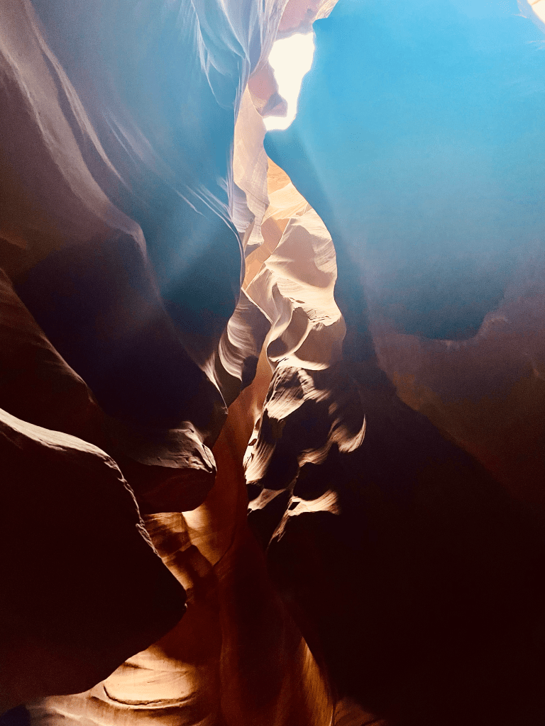We crashed in Page, a cozy little town just a quick 10-minute drive from Antelope Canyon. Since we were scheduled for an early tour, we ended up strolling into the canyon before the sun was even up. At first, it was pitch black, nothing like those glam pics you see online.